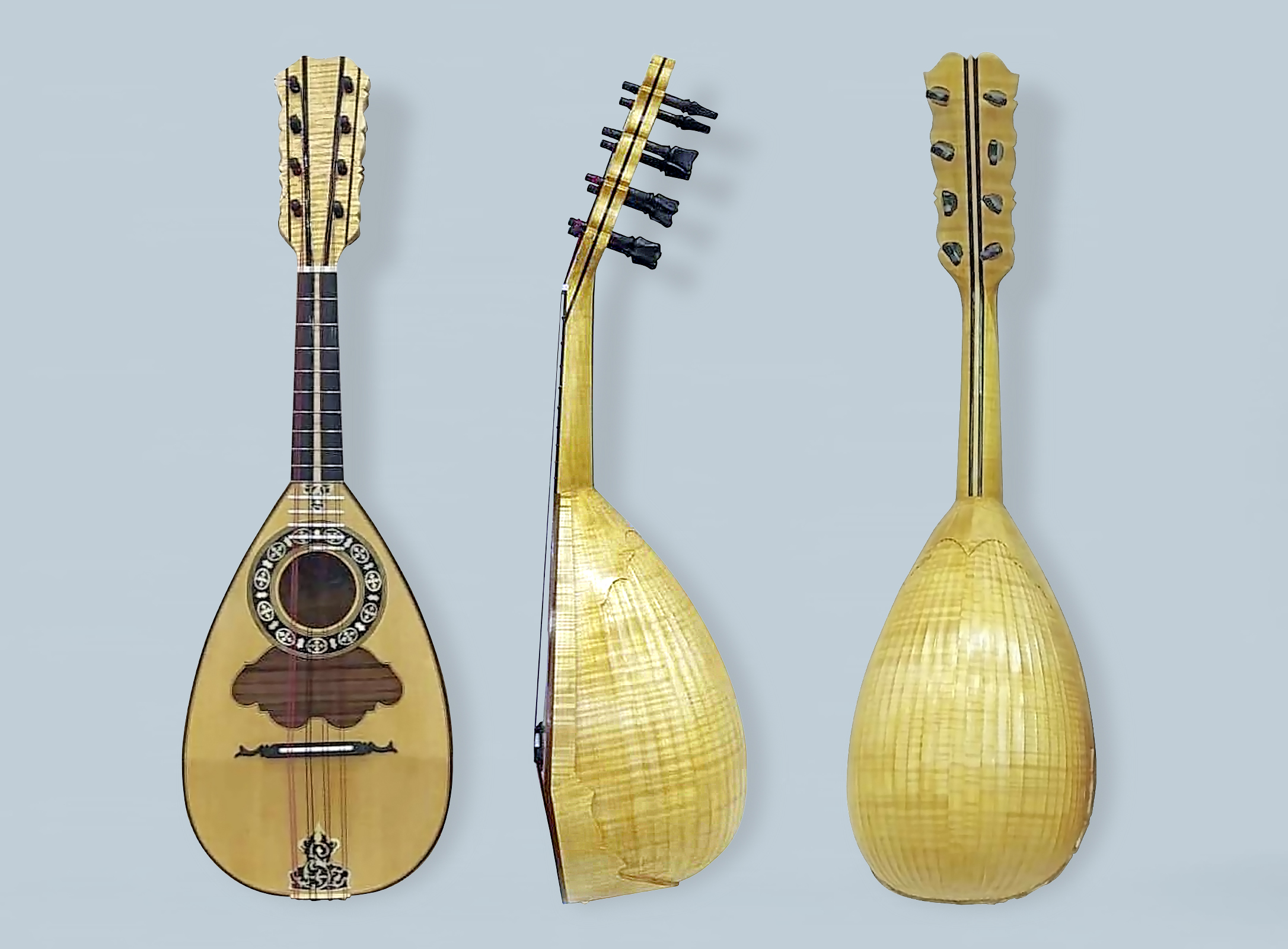 | Ioannis Skoulas, Barockmandoline, Frueh-Neapolitanischer Nachbau, Ahorn, Fichte, gekehlte Rippen, Iraklion, Griechenland |